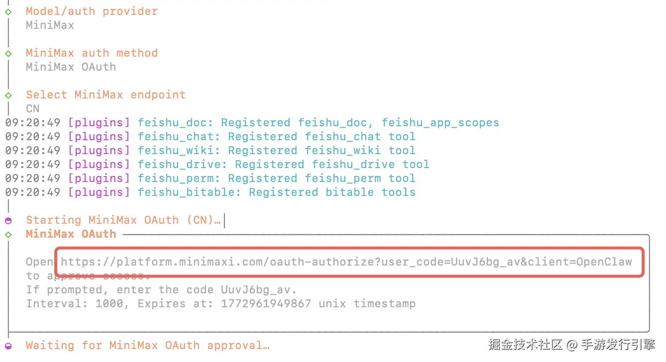 | Minimax | platform.minimaxi.com/ | openclaw会自动跳转,记得选cn中文!!注意,提前去网站注册好,不然跳转的时候没法授权又得重新来!!(如果确实忘记了,那就注册好之后把命令行显示的地址粘贴到浏览器再访问一次) | |