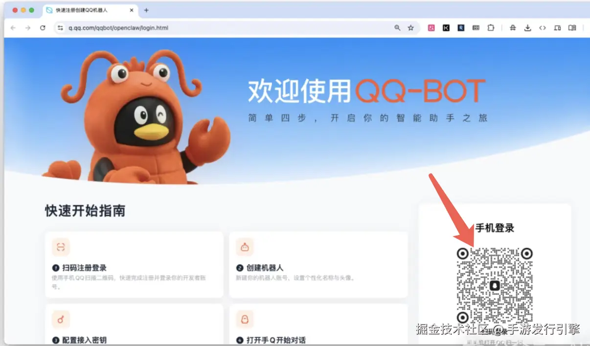 先打开这个页面: q.qq.com/qqbot/openc… QQ 扫码登录: