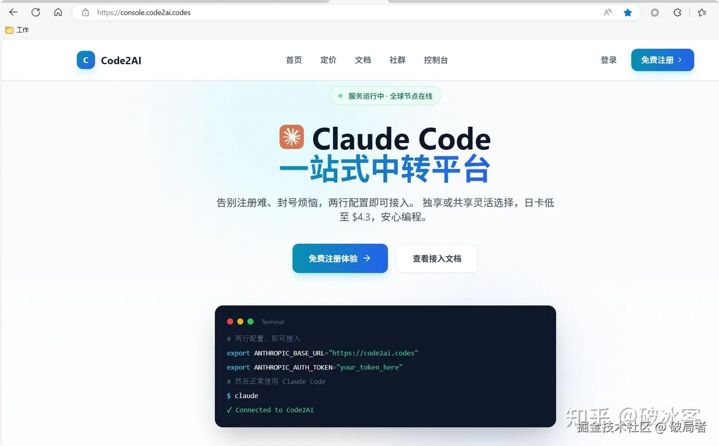 既然大环境我们改变不了,那就学会聪明的借力。Code2AI不是第一个做中转的,但它一定是目前对国内开发者最友好的那个。