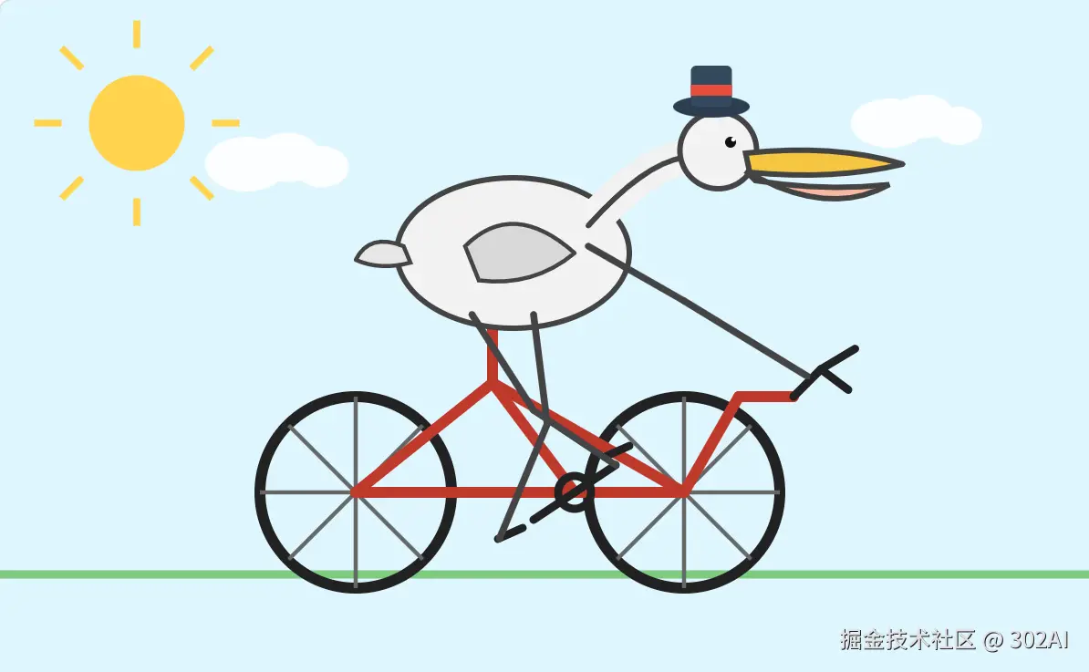 提示词:绘制一只鹈鹕骑自行车的SVG