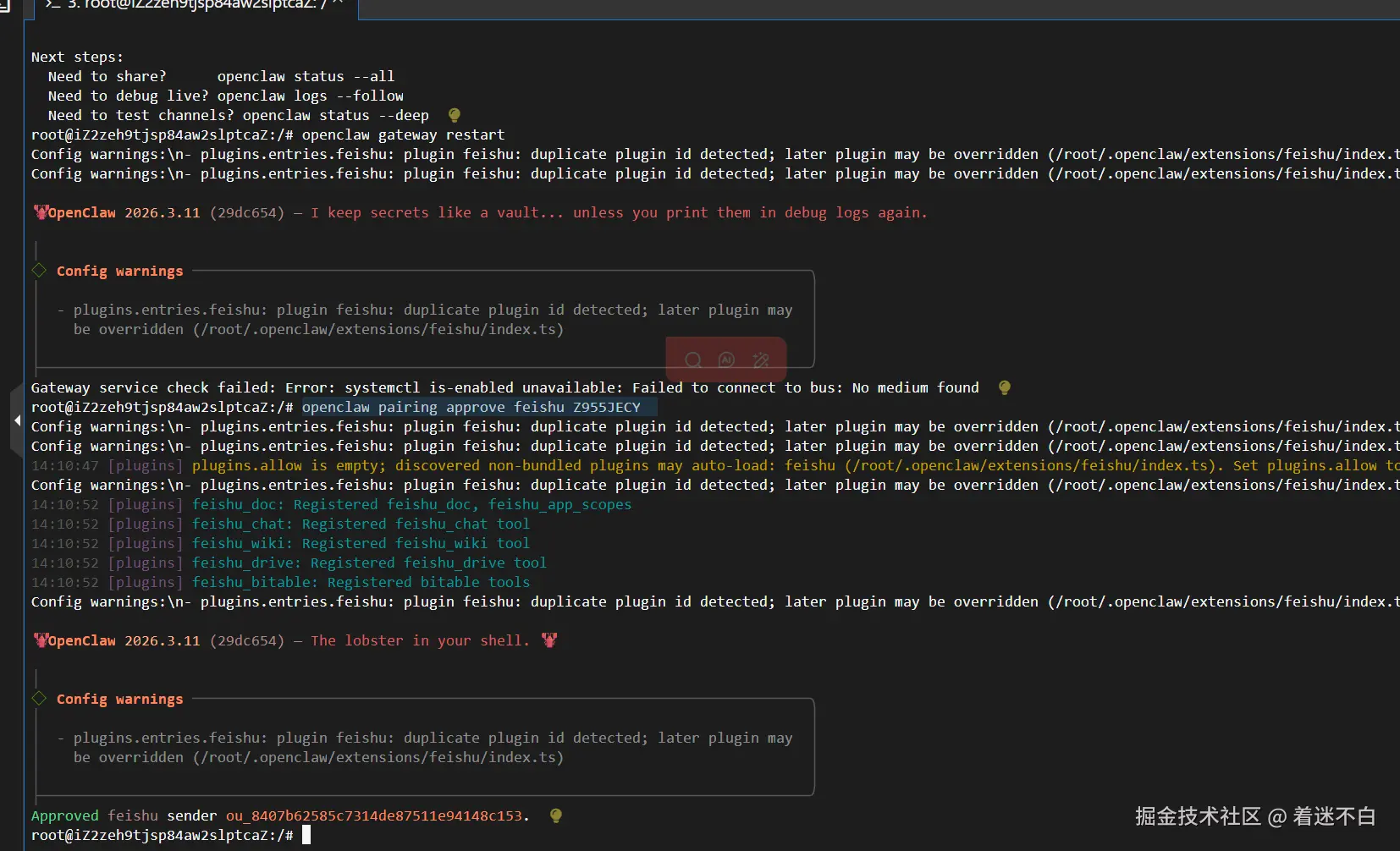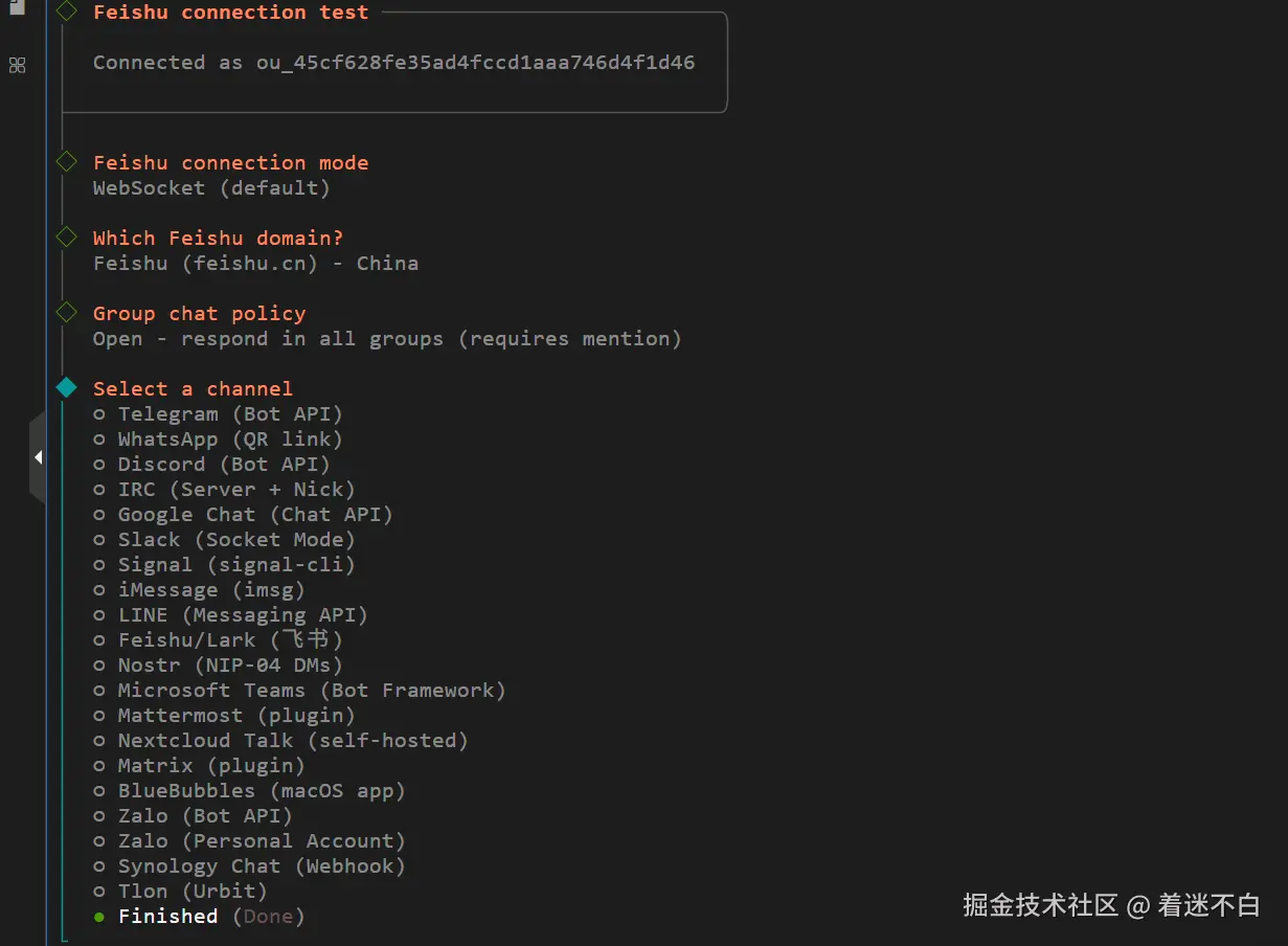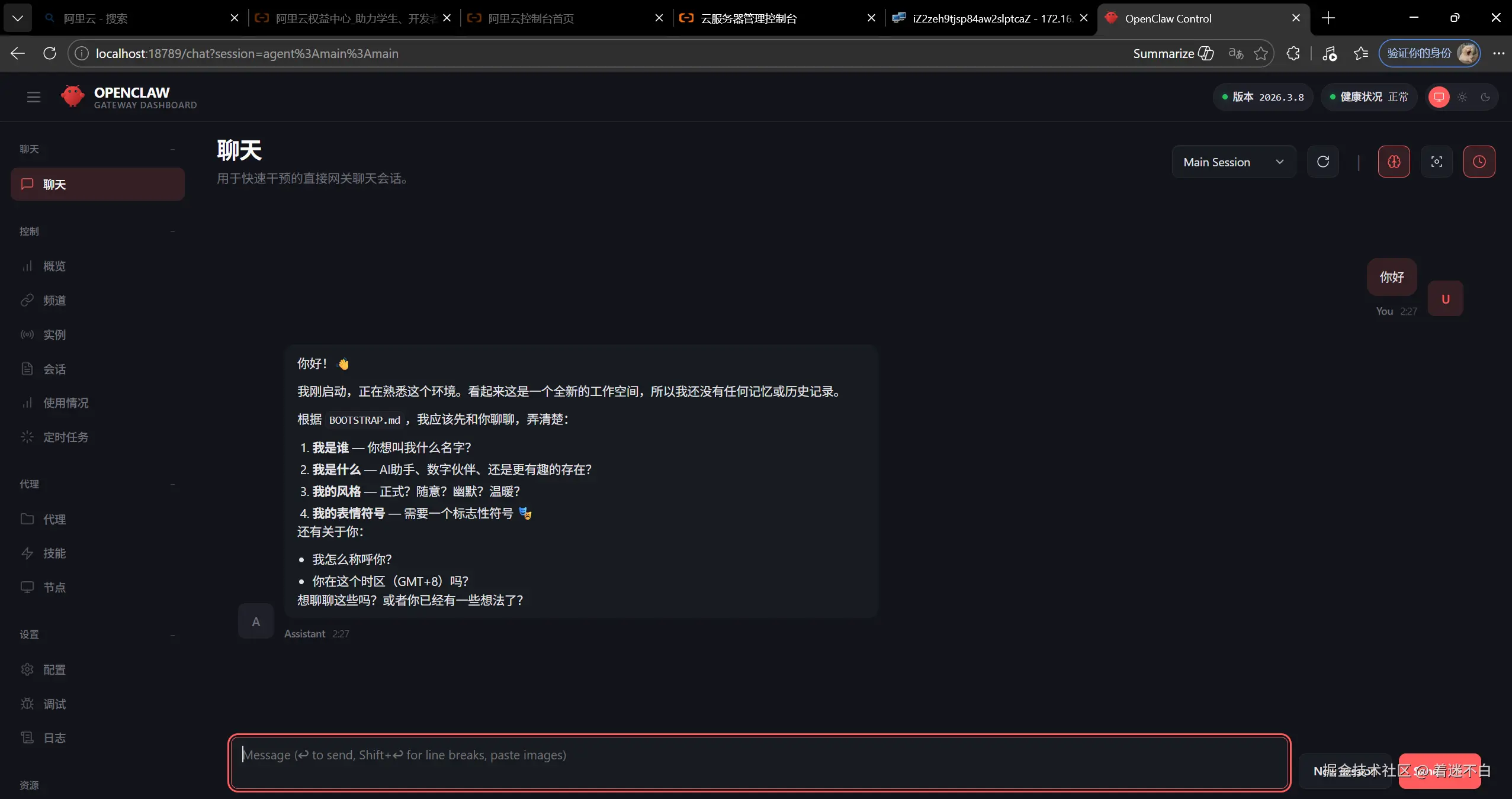 最后去飞书发信息测试,如图,已完成飞书机器人的配置