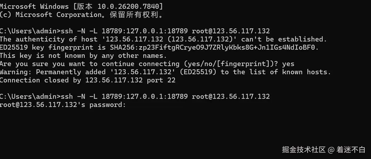 要先本地连接ssh服务才能这样用否则回环地址无效