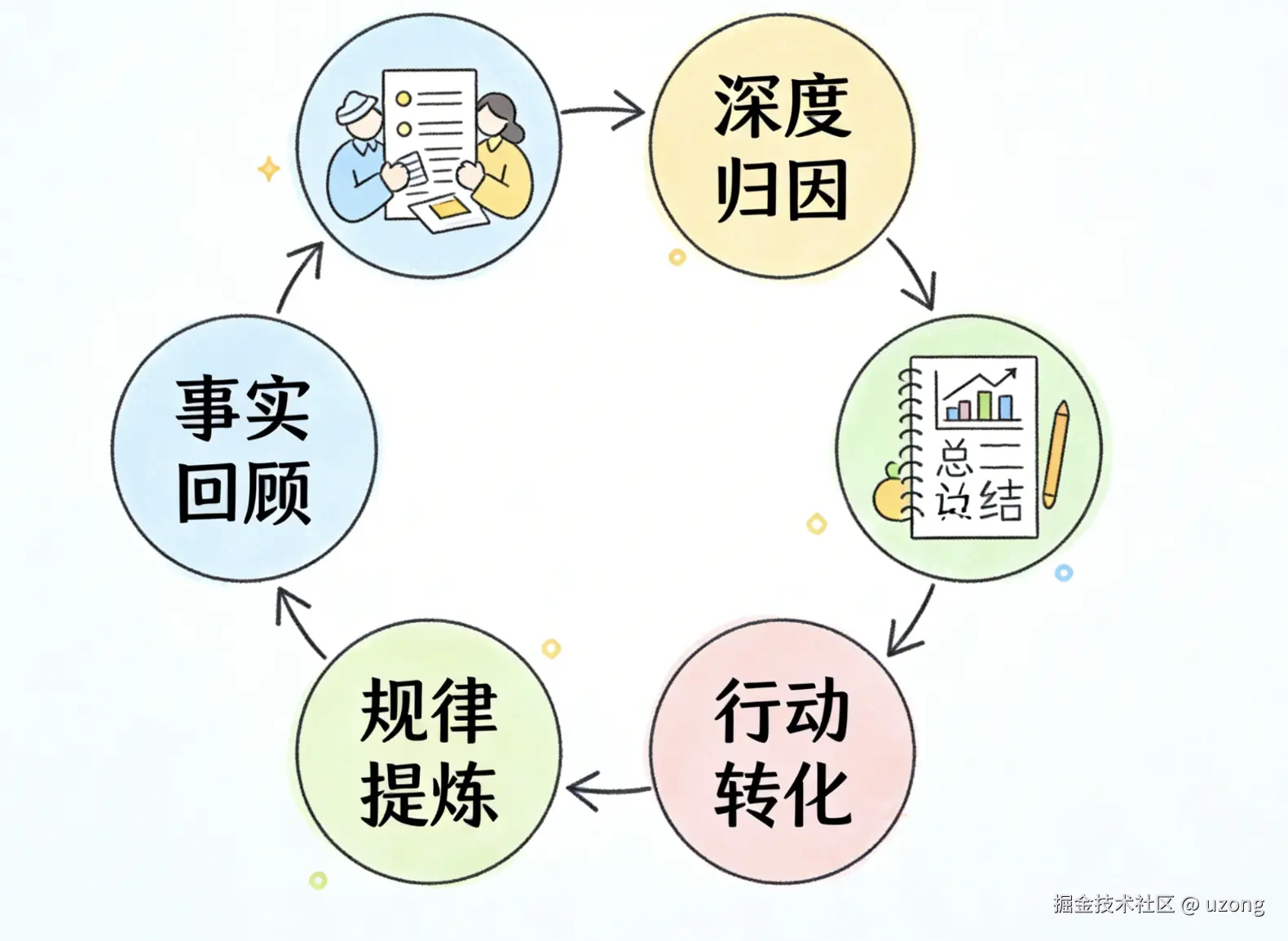 反思 - 提炼 - 行动。