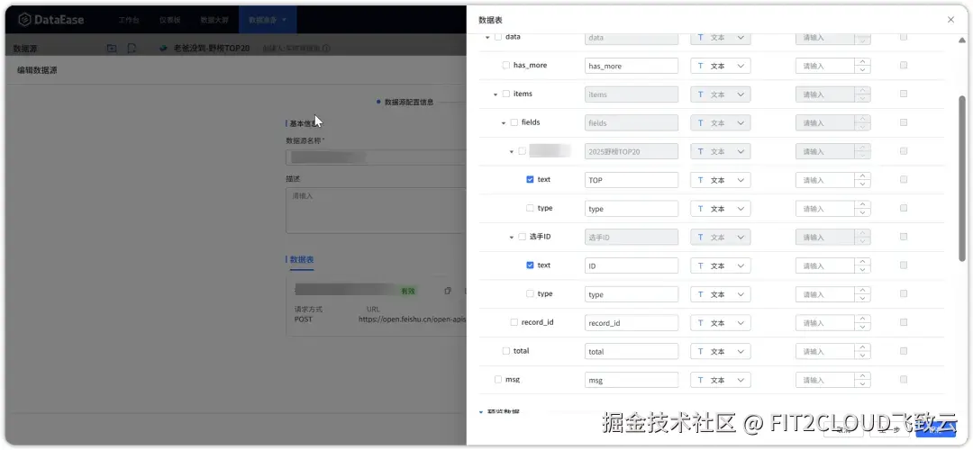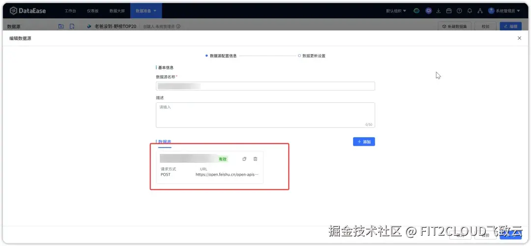 三、在DataEase中配置插件,并对接飞书多维表格数据源