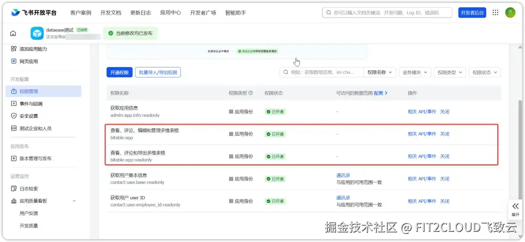 二、飞书应用的权限设置