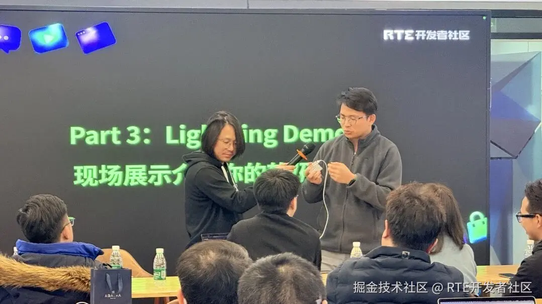 上周六(3 月 7 日),Physical AI Camp 北京站&RTE Meetup 落地北京望京留创园。我们邀请了来自声网、矽递科技、Intent Company 和盒智科技的技术与产品专家。大家将围绕模型、通讯、硬件解决方案和终端落地场景的跨平台协同,交流真实的经验。