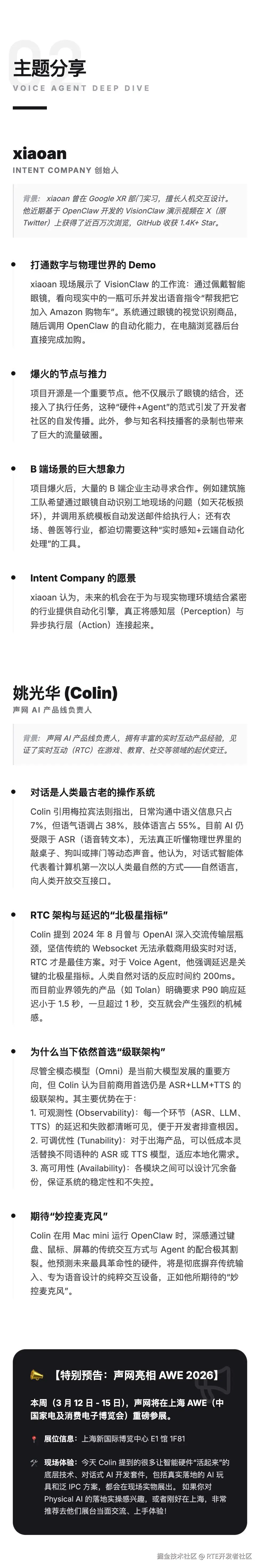 2026 开年,开源项目 OpenClaw 的热度证明了个人化 AI 的潜力。从纯文本对话演进而来,Voice Agent 正在 Go Visual、Go Physical,并在往横跨桌面端、移动端与智能硬件的 Go Everywhere。跨平台、多模态的落地实战已经展开。