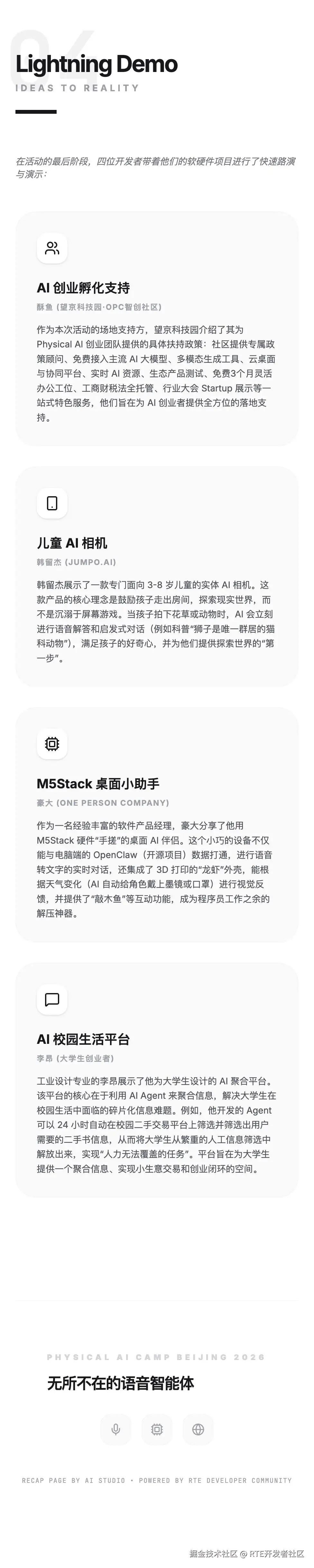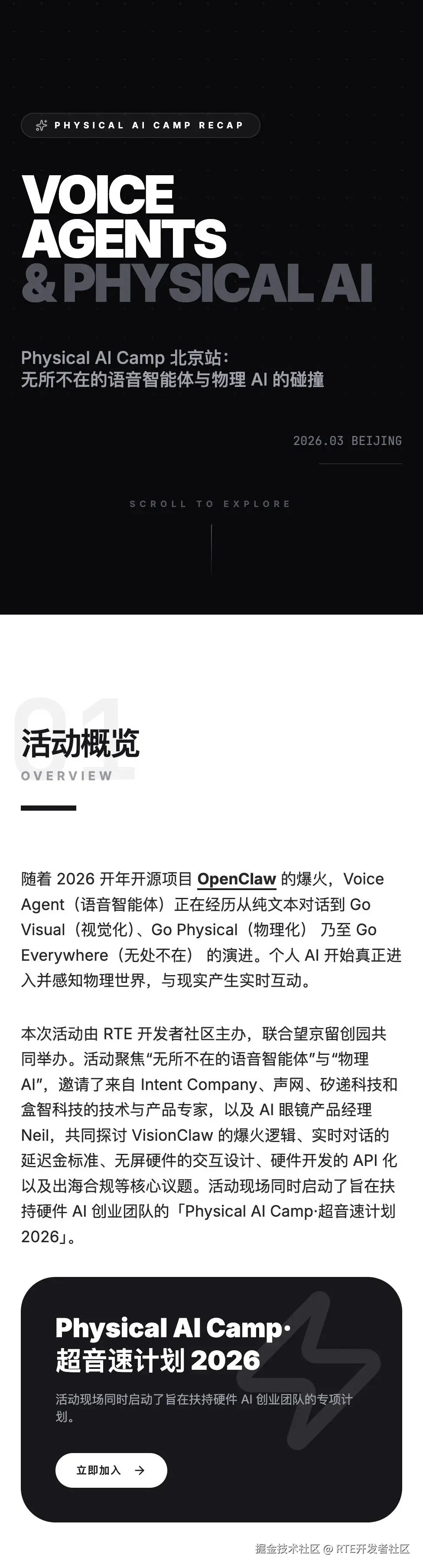 本次 RTE Meetup 也是 RTE 开发者社区即将推出的 「Physical AI Camp·超音速计划 2026」 的预热前哨站。