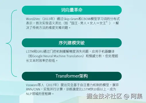 算法演进驱动,NLP技术的突破(如注意力机制)反哺AI基础架构创新。BERT等预训练模型验证了"大数据+大算力"范式在通用智能中的可行性,同时促进多模态AI(如CLIP)的发展。