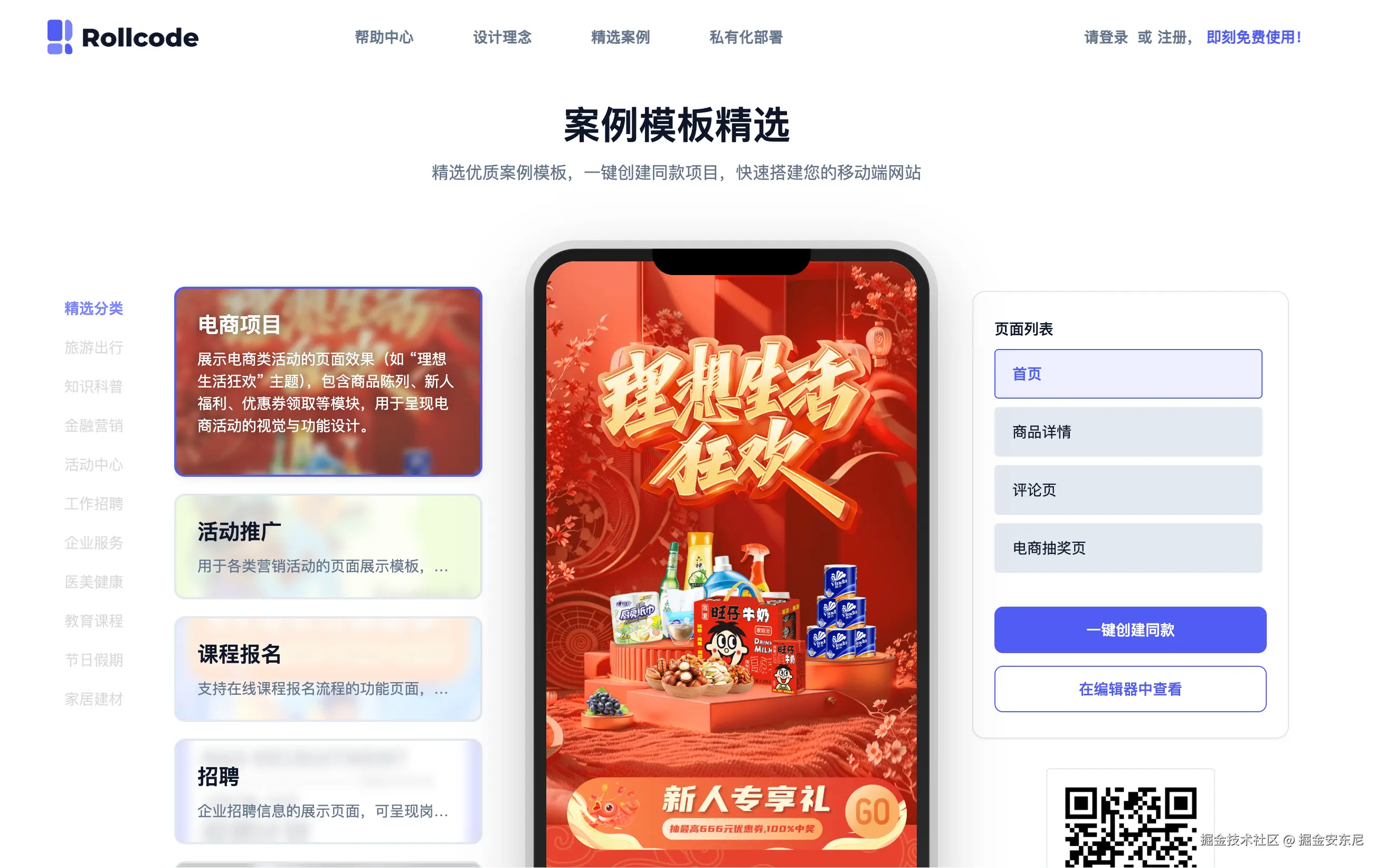 当这些能力被拆开在不同工具里时,团队的效率并不会真正提升。这也是我最近重新看了一遍 RollCode 官网之后的一个直观感受:
