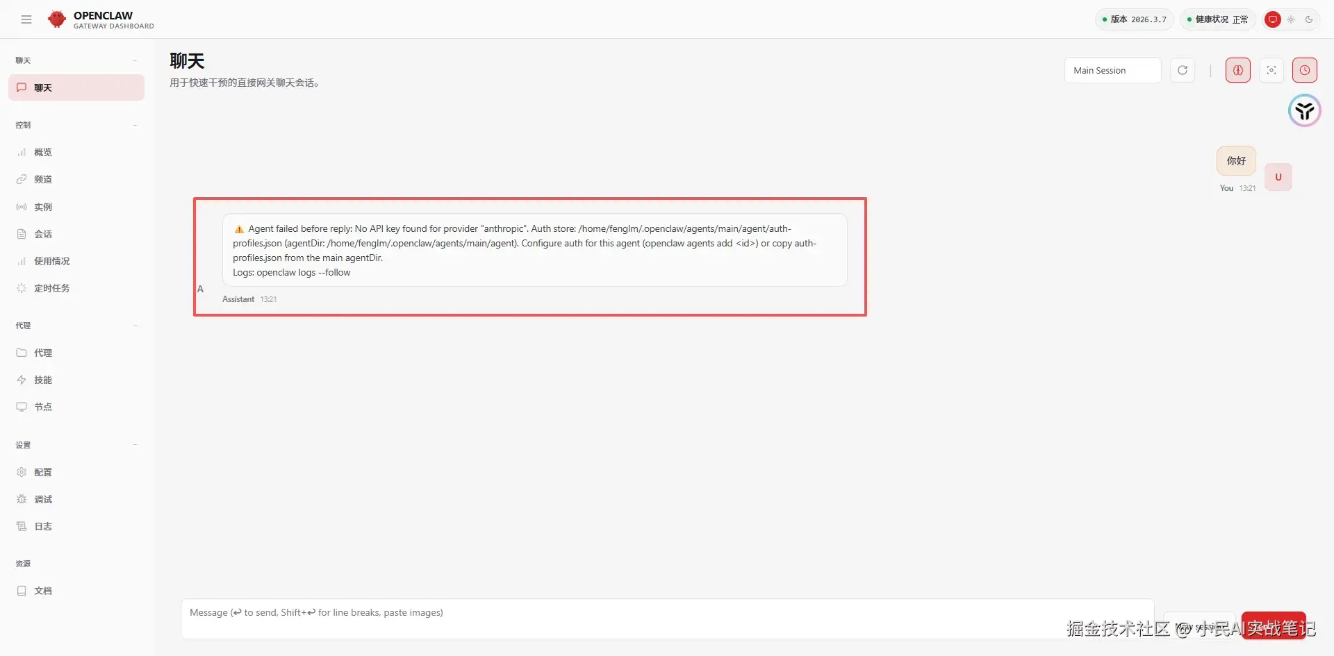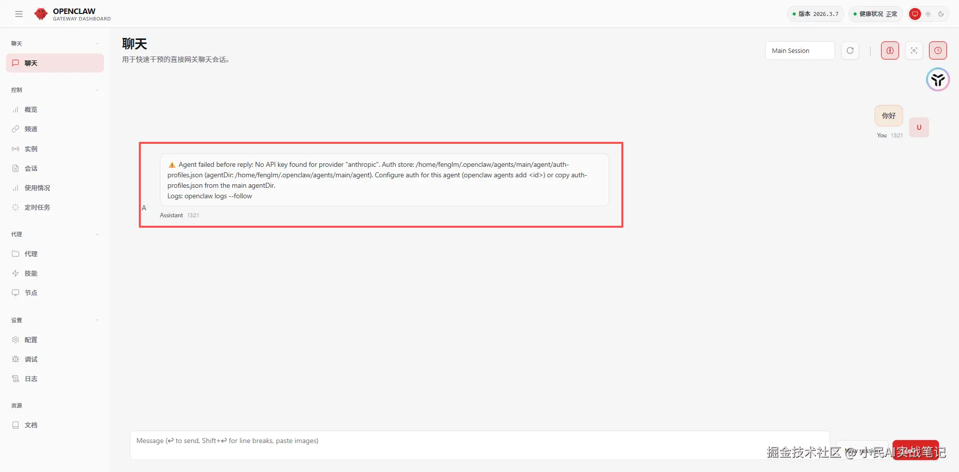 配置完成后,你的OpenClaw就有“大脑”了,可以继续下一步绑定QQ机器人了