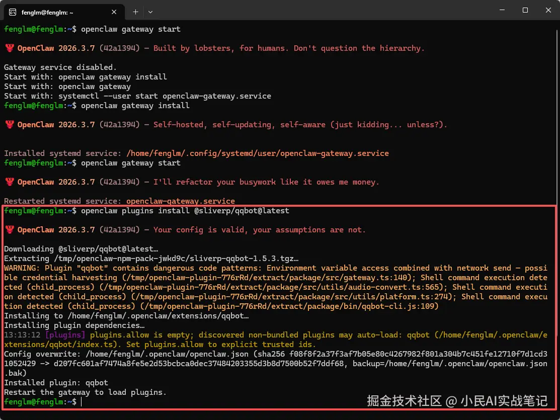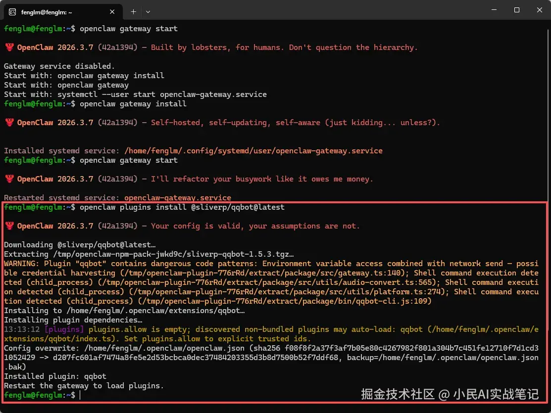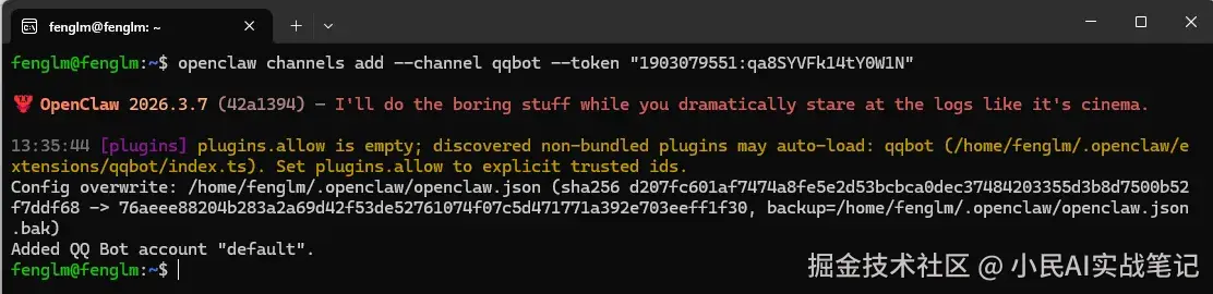 OpenClaw安装成功后,我们继续一鼓作气,把QQ插件也安了👇