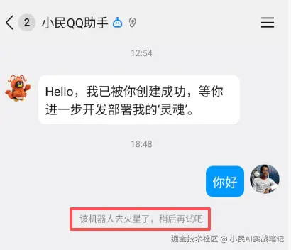 但是——先别急着跟它聊天,这时候发消息会提示“该机器人去火星了,稍后再试吧”。