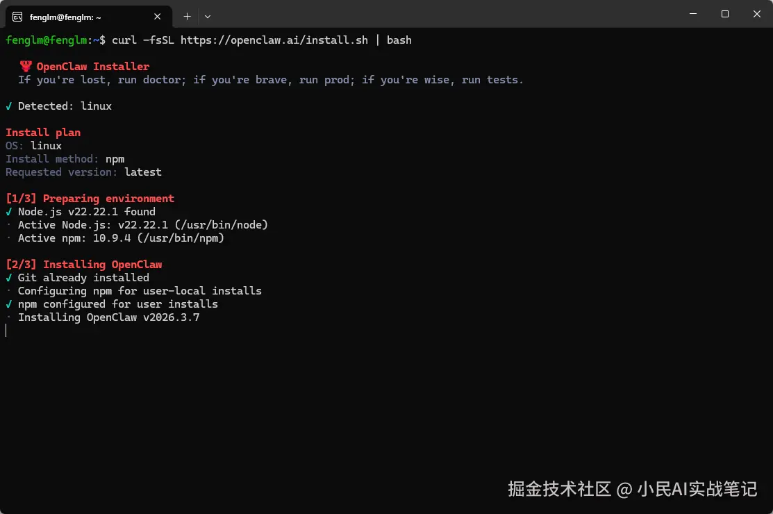 马上转变思路,重新安装OpenClaw,开整👇👇