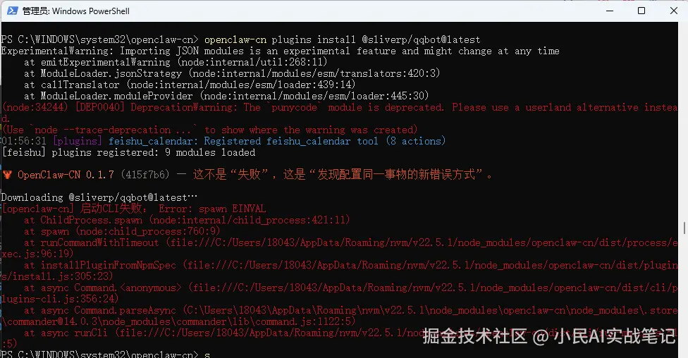 [openclaw-cn] 启动CLI失败: Error: spawn EINVAL