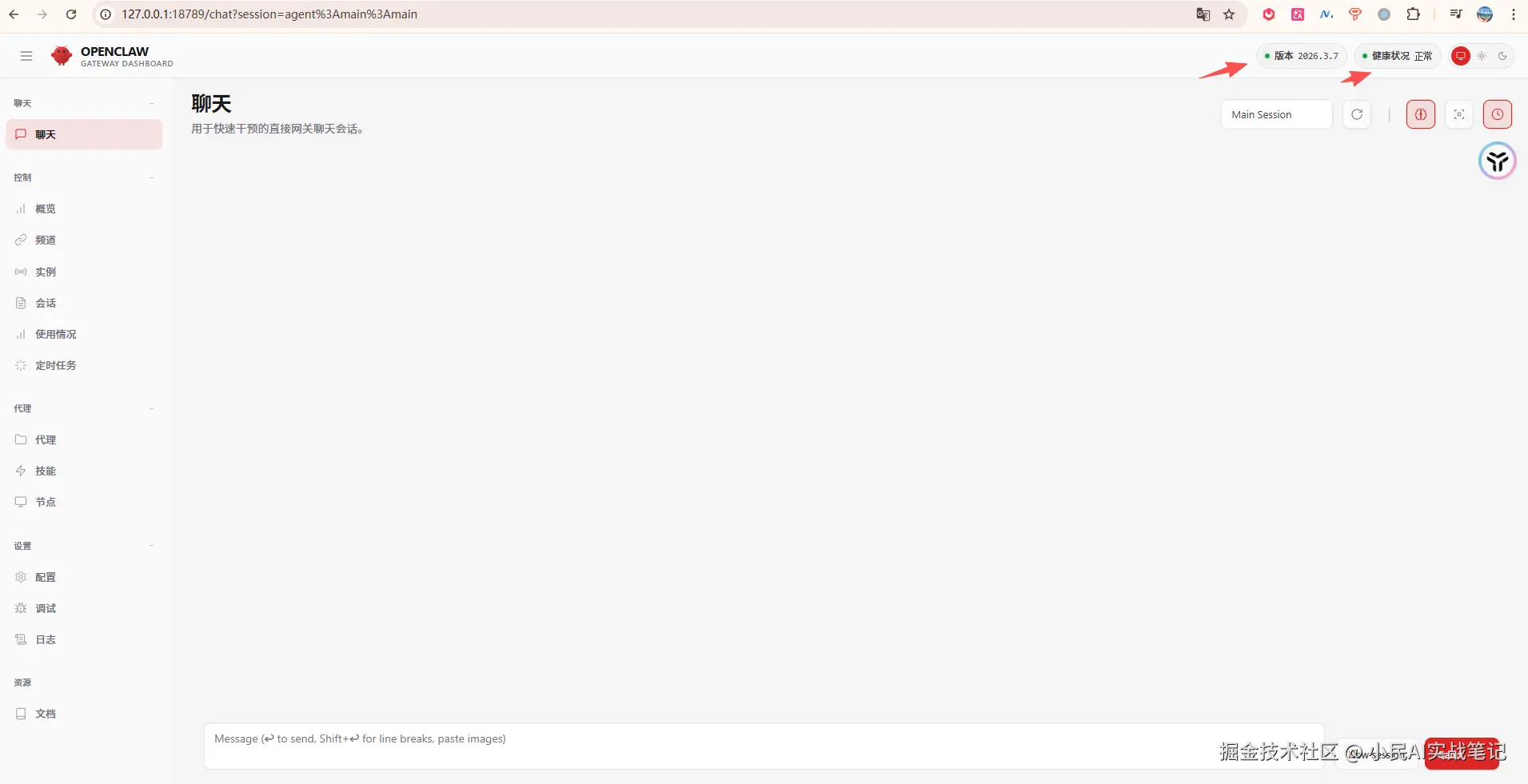 复制这个地址,粘贴到浏览器中打开,就能看到OpenClaw的Web界面👇