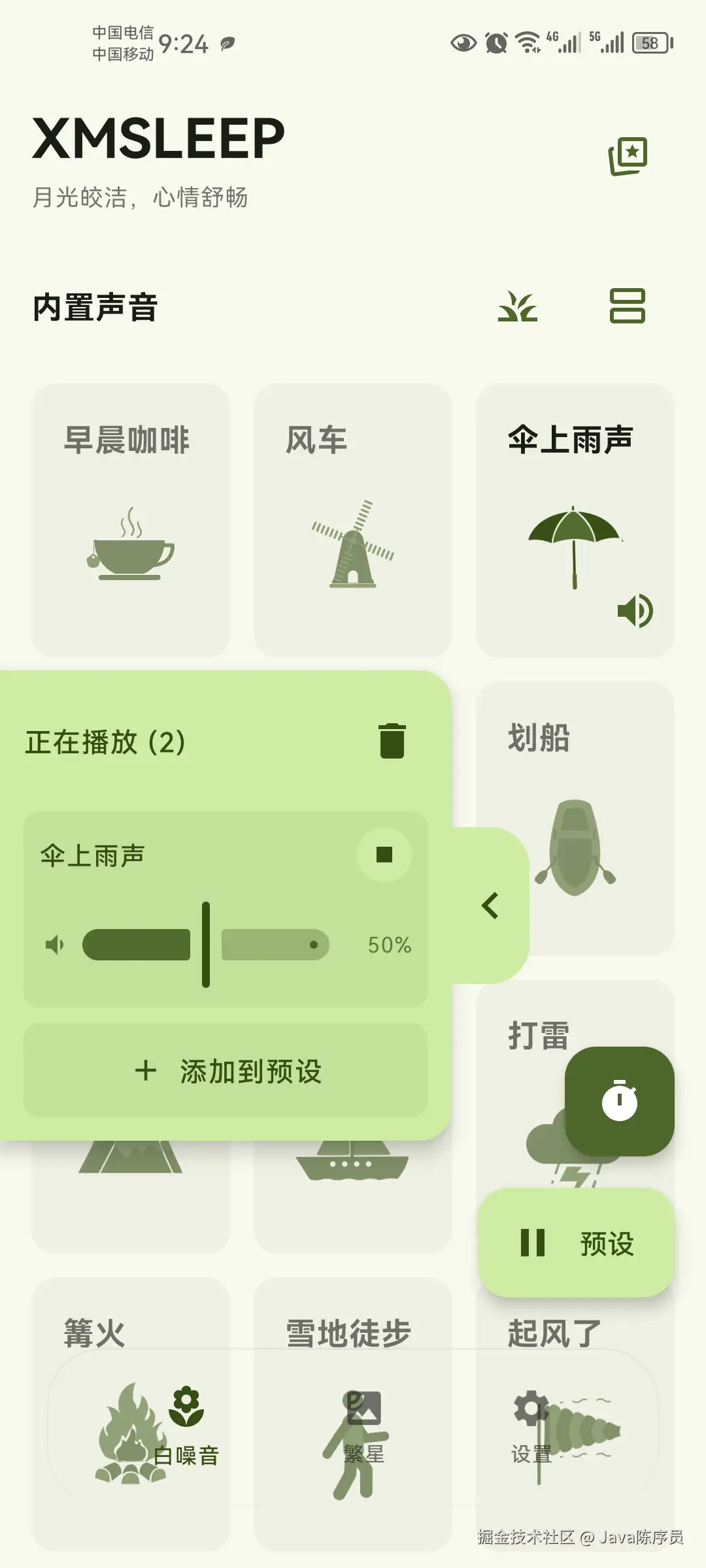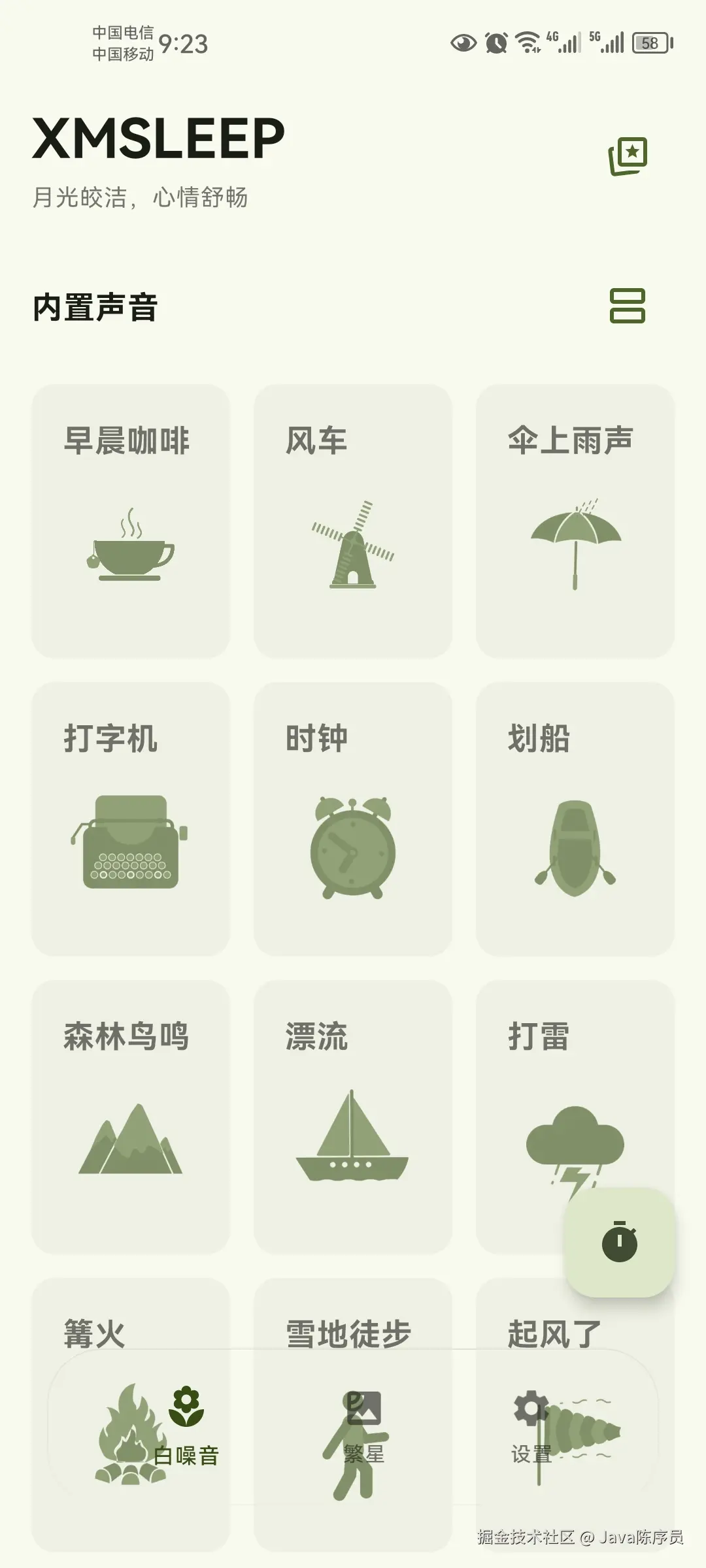 XMSLEEP —— 一个专注于白噪音播放的 Android 应用,提供多种自然声音帮助您放松、专注和入眠。应用采用 Material Design 3 设计规范,界面简洁美观,操作流畅。