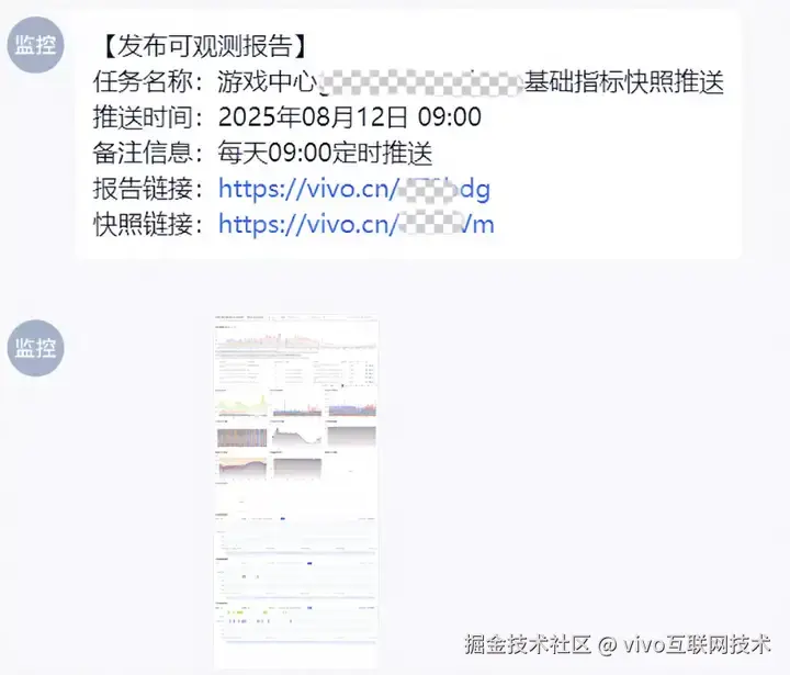 抽离核心观测数据来快速实现整体核心SLI指标的观测,是发现一些全局影响故障最直接的手段。如果一段时间所有接口的rt都缓慢上涨,那么一定代表着系统出现了影响面最大的故障。通过定时报告的配置,既防范了个人的观测习惯风险,也提升了移动端的观测能力。版本发布后的定期报告观测,也是我们当前观测版本变更后可用性的主要手段。