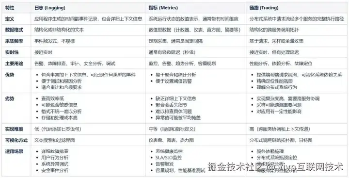 对于可观测,大家或多或少都听过可观测性的”三大支柱“:指标、日志和链路,2017 年Peter Bourgon 撰写的文章《Metrics, Tracing, and Logging》 系统地阐述了这三者的定义: