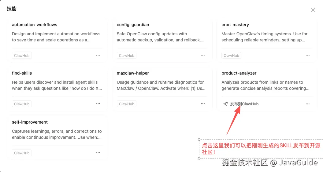 我们确认没问题后同时还可以一键发布到 ClawHub 开源社区: