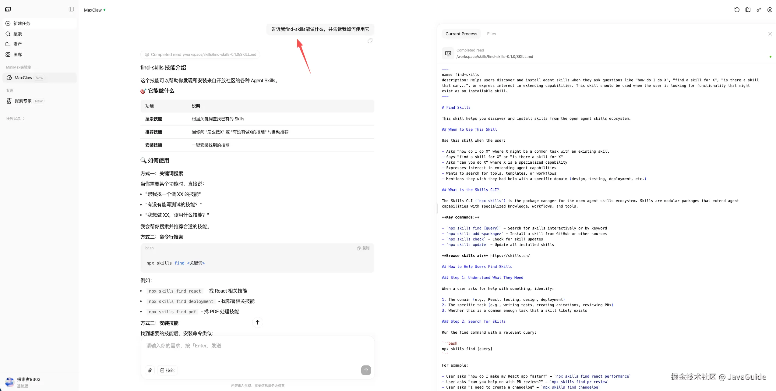 这次实测的重点,是 MaxClaw 新上线的技能创建功能。