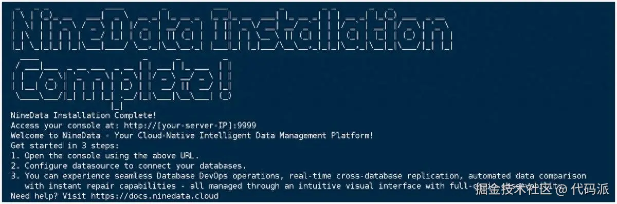 等待屏幕中打印出如下提示,即代表 NineData 服务已经顺利启动。