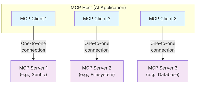 | MCP client【MCP客户端】 | 与 MCP 服务器保持连接并从 MCP 服务器获取上下文,供 MCP 主机使用的组件 |