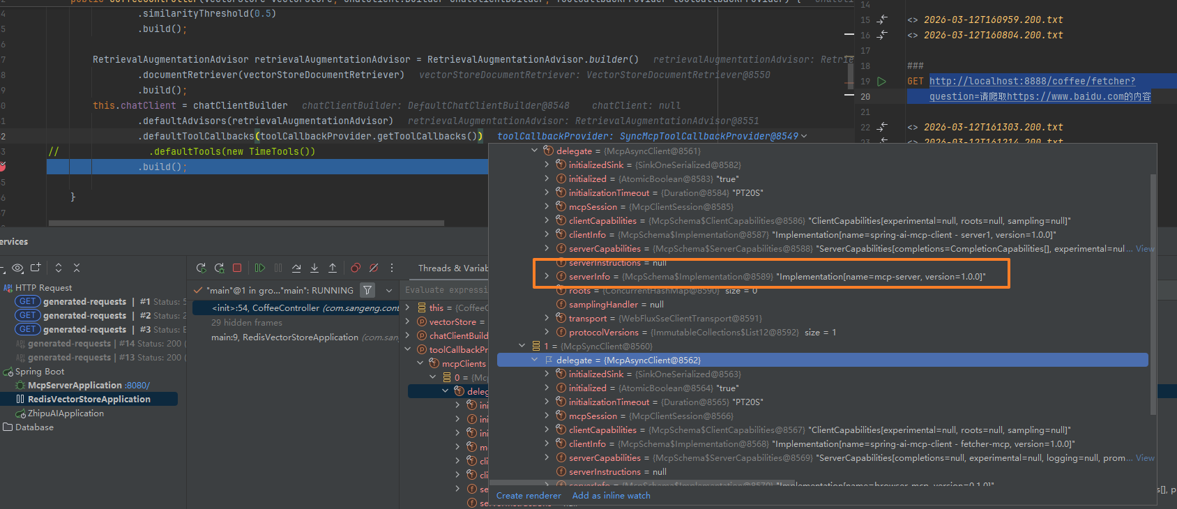 public CoffeeController(VectorStore vectorStore, ChatClient.Builder chatClientBuilder, ToolCallbackProvider toolCallbackProvider) {