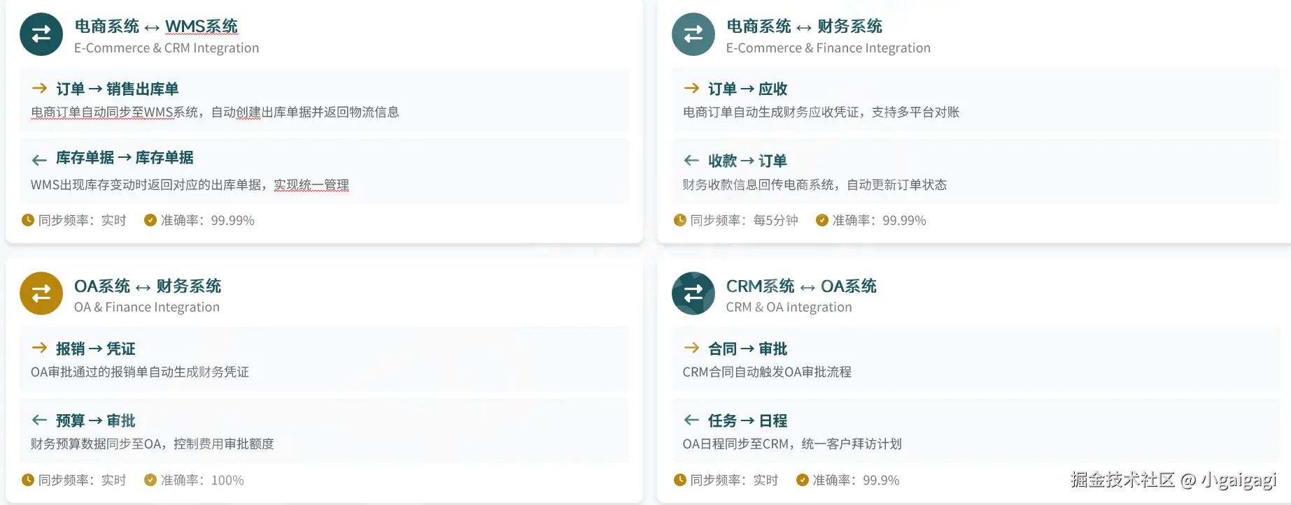 - 客户主数据统一:CRM客户信息同步至ERP、营销自动化平台