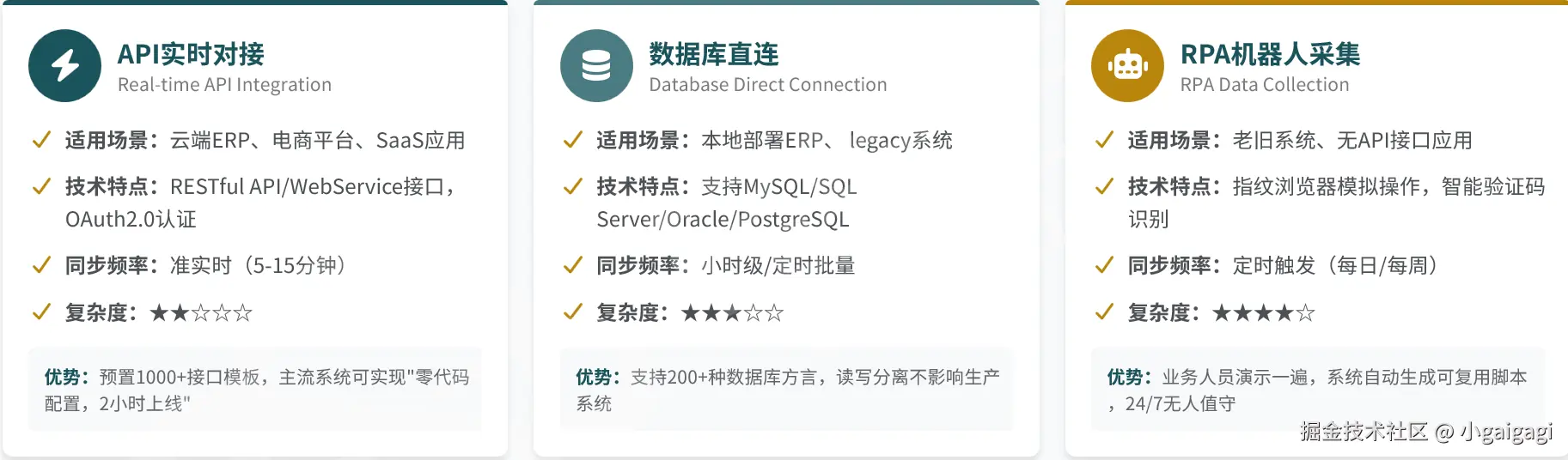 │ 支持:数据库CDC │ API调用 │ 文件FTP │ 消息队列(MQ/Kafka) │