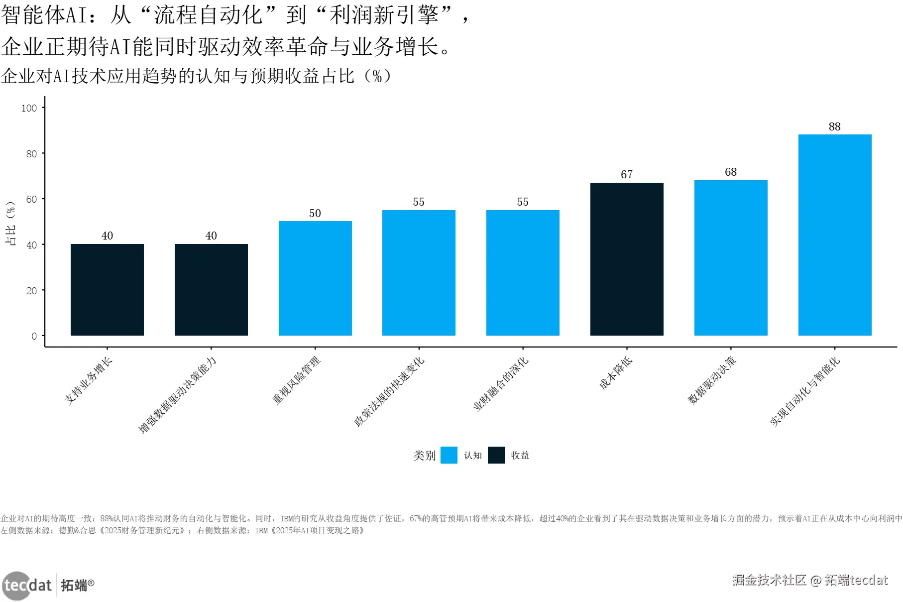 企业对AI的期待高度一致:88%认同AI将推动自动化,67%预期它能降低成本。IBM的研究更是指出,智能体AI将推动由AI驱动的工作流程在两年内增长8倍。未来的财务流程,将不再是固化的流水线,而是由一群AI智能体根据任务自动拼接的“乐高积木”。
