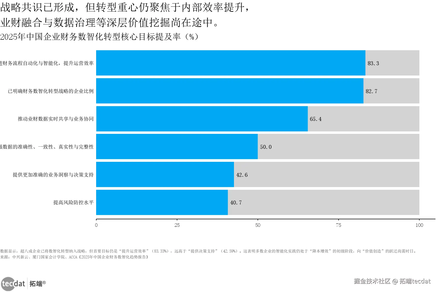 数据告诉我们,超80%的企业已将数智化纳入战略,但首要目标(83.33%)依然是“提升运营效率”,远高于“提供决策支持”(42.59%)。这说明,多数企业的智能化实践,本质上是想找一个更聪明的“工具人”,而不是一个能出谋划策的“参谋长”。