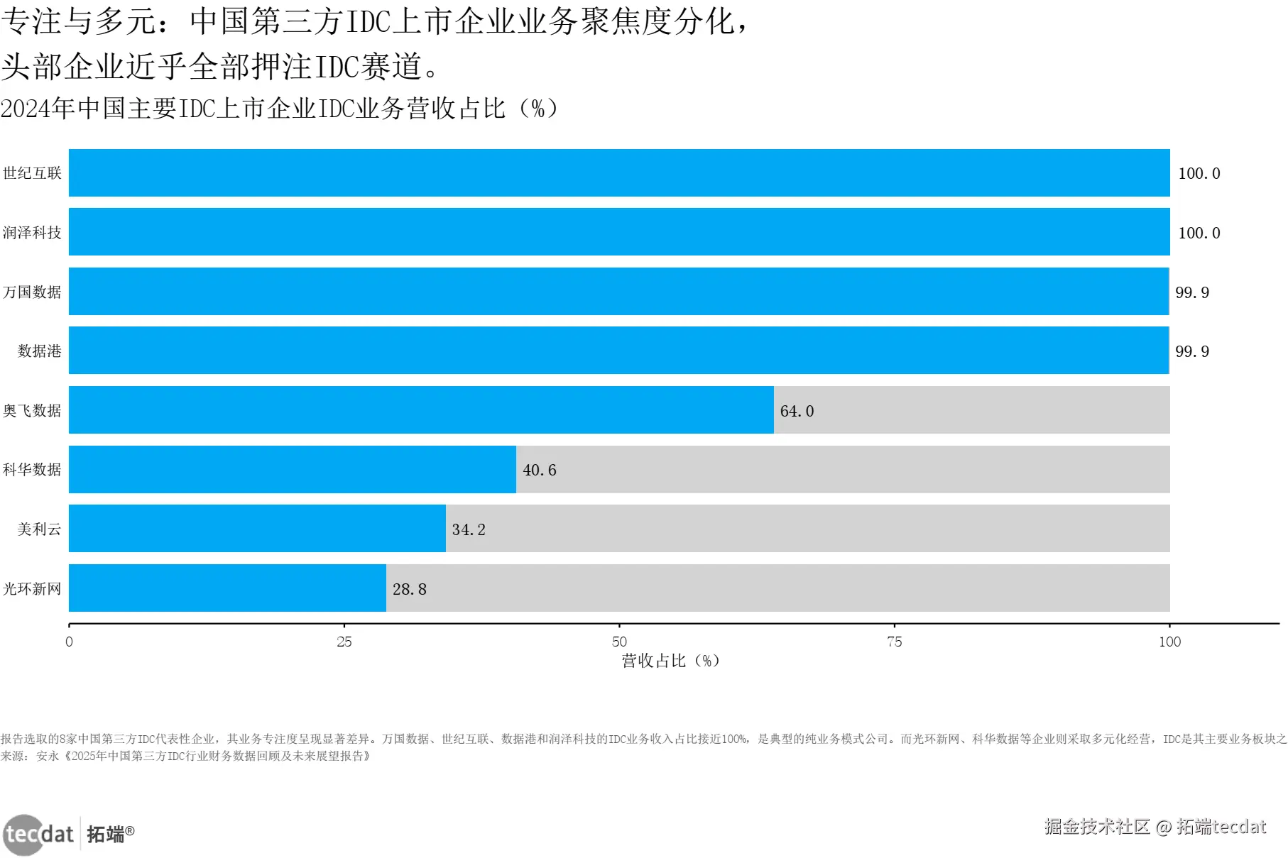 2024年中国主要IDC上市企业IDC业务营收占比(%)数据EXCEL及图表PDF模板已分享到会员群