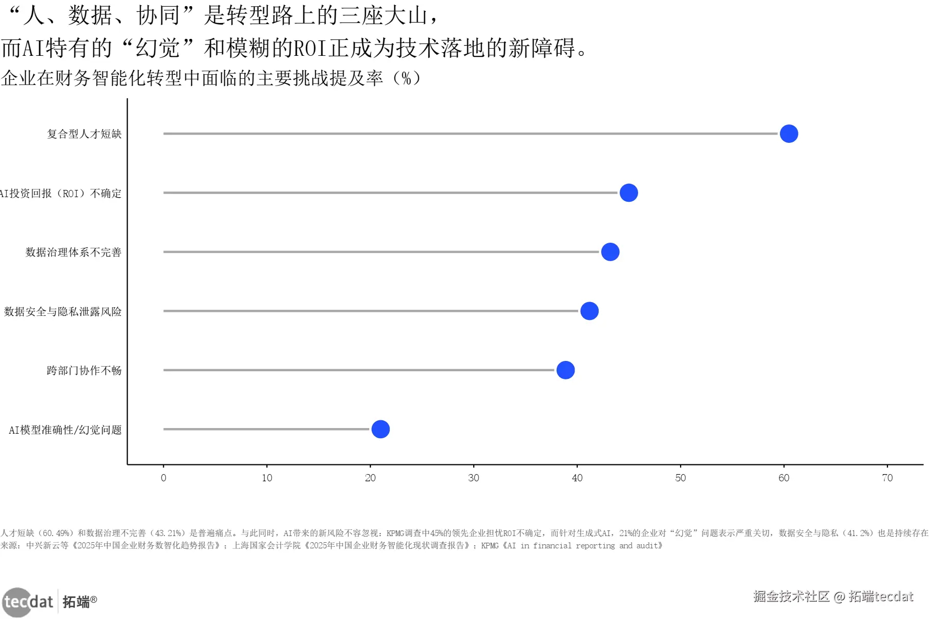 企业在财务智能化转型中面临的主要挑战提及率(%)数据EXCEL及图表PDF模板已分享到会员群