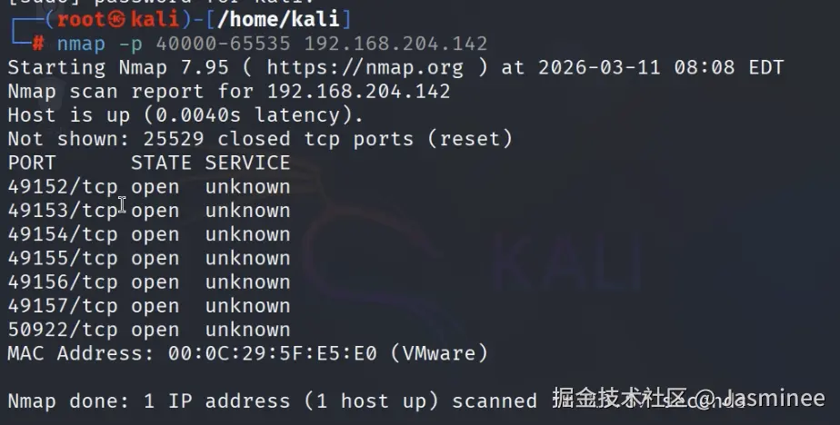 nmap -p 40000-65535 192.168.204.142 # 替换为目标机 IP