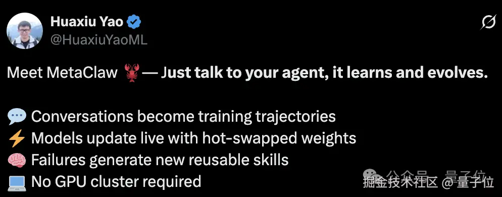 注意注意!还不是某个任务上的单点提升,这次有人直接给整个智能体套一层在线强化学习系统 MetaClaw——