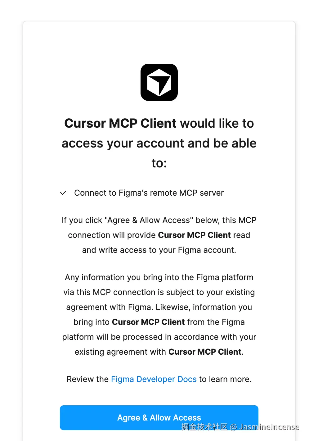 点击 Figma MCP server deep link,会在cursor 打开 MCP配置