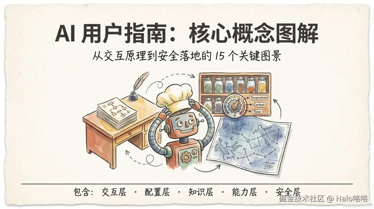 这篇文章想给你补上一套心智模型:知道 AI 在做什么、会在哪里坏、为什么坏。15 个概念,每一个都直接对应一类常见翻车场景。