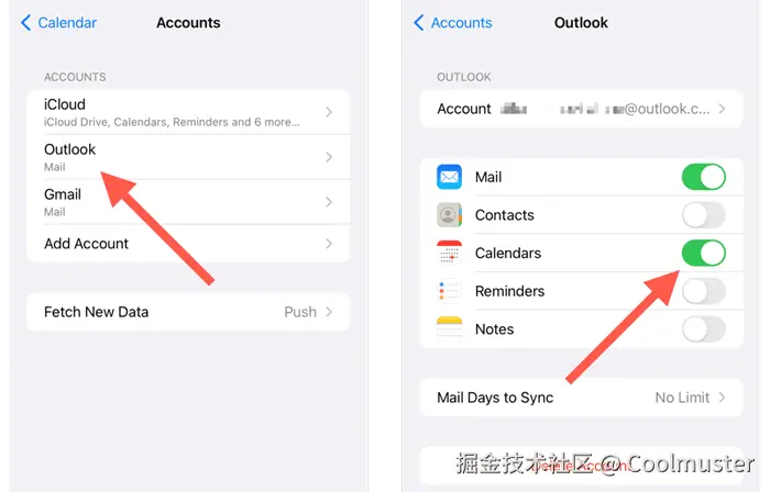 步骤1:请在iPhone上打开“设置”应用,然后选择“日历”选项。然后单击“帐户”>“添加帐户”以将您的Outlook帐户导入iPhone。