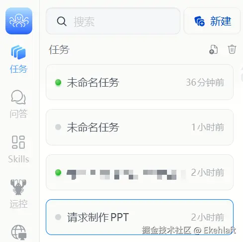 安装完成后回到主页,新建任务,输入:仔细帮我检查下我的openclaw的安全性