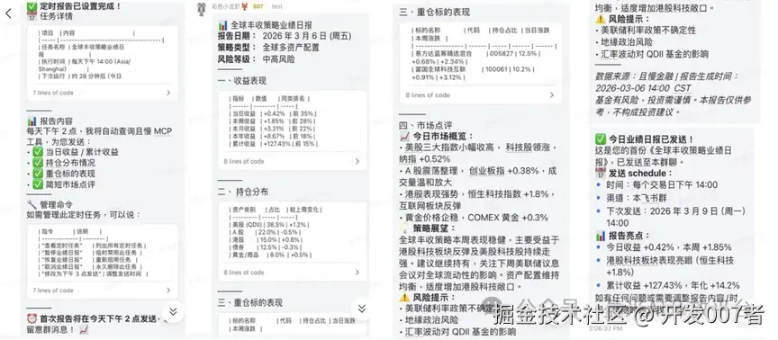 还有更高阶的玩法,也是投资者最关注、每天都可以用上的场景——投资组合策略业绩跟踪和报告定时推送。