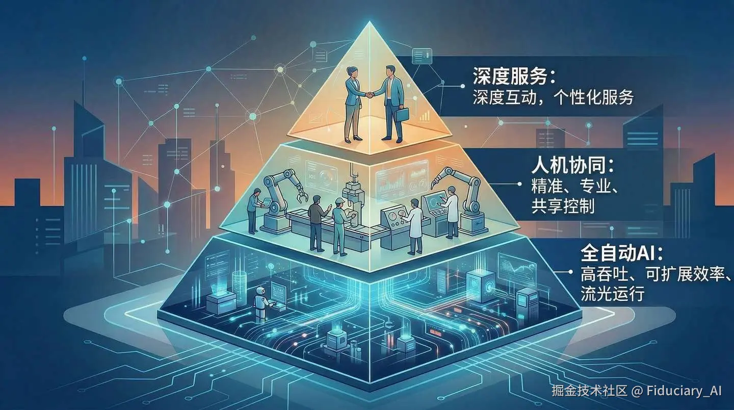 要实现这种规模经济,我们需要重新定义服务模式。不是简单的”用AI服务更多客户”,而是分层服务、人机协作。