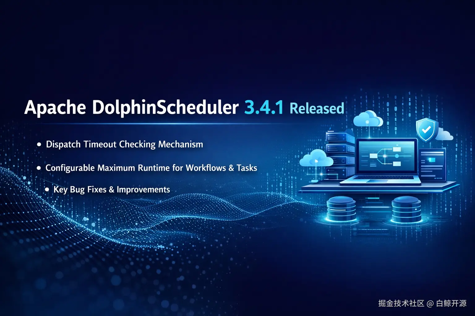 Apache DolphinScheduler 3.4.1 是一个以 调度稳定性提升和任务运行控制能力增强为核心的维护版本。通过新增调度容错机制、支持任务最大运行时间控制以及修复多项关键问题,该版本进一步提升了系统在生产环境中的可靠性。