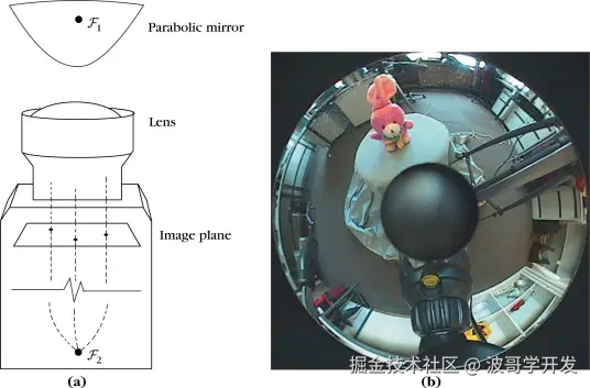 传统的**针孔相机模型(Pinhole Model)**假设光线直线传播,适用于视场角小于120°的普通相机。但鱼眼镜头的视场角通常达到180°甚至220°以上,会产生严重的径向畸变,针孔模型已无法准确描述。