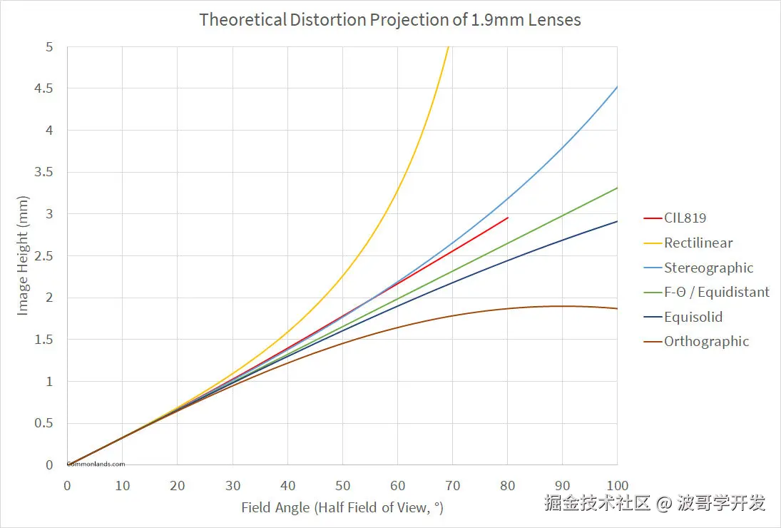 图:不同投影模型的畸变曲线对比