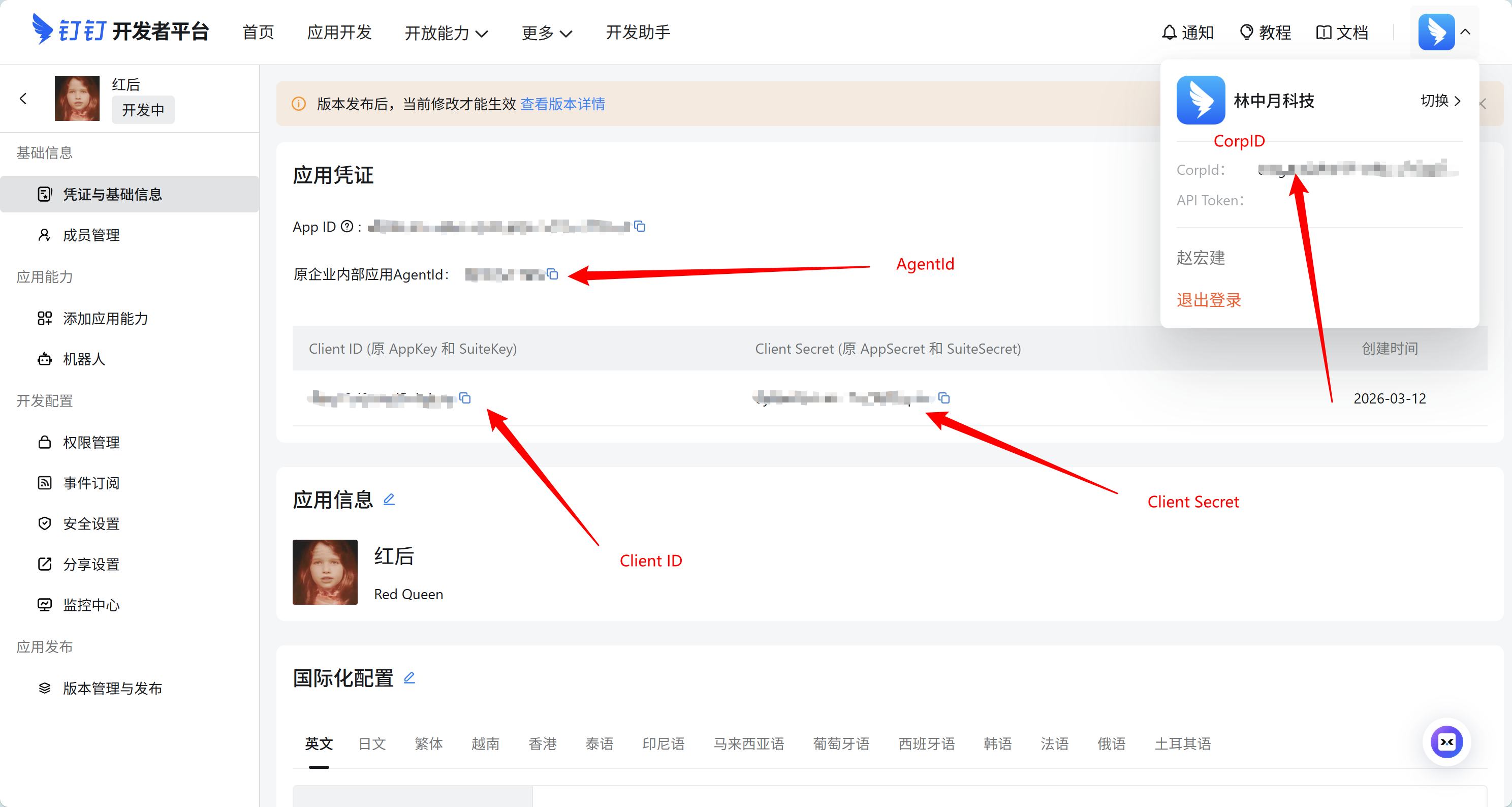 AgentId、Client ID、Client Secret、CorpId、AgentId