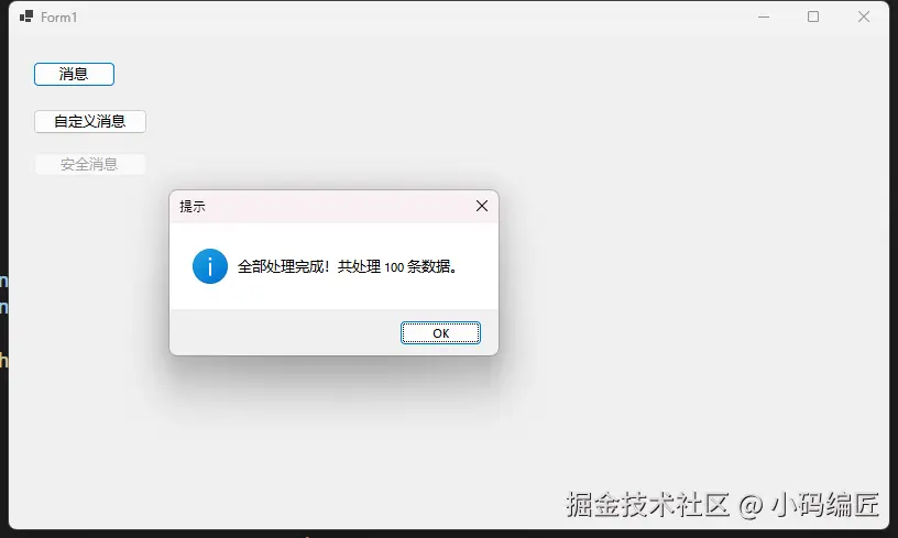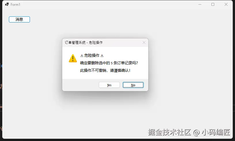 根据我这几年踩过的坑,超过 60% 的 WinForms 项目在消息框使用上都存在体验问题。轻则用户吐槽,重则引发操作事故。读完这篇文章,你将掌握: