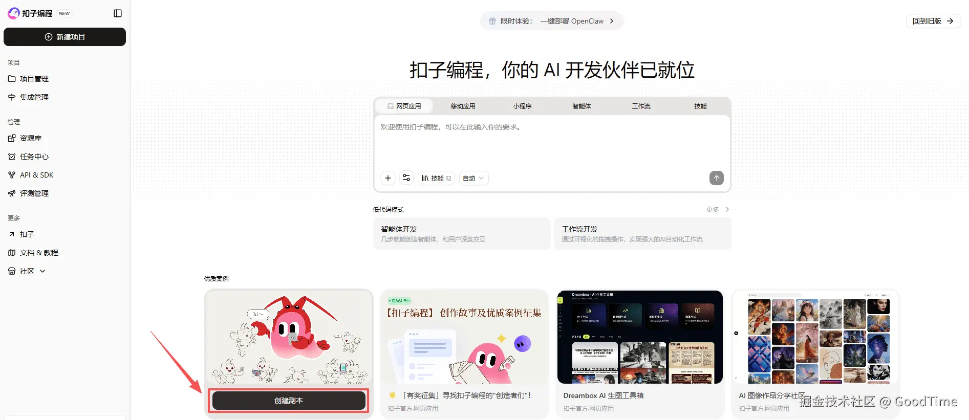 一、在扣子编程中一键部署 OpenClaw