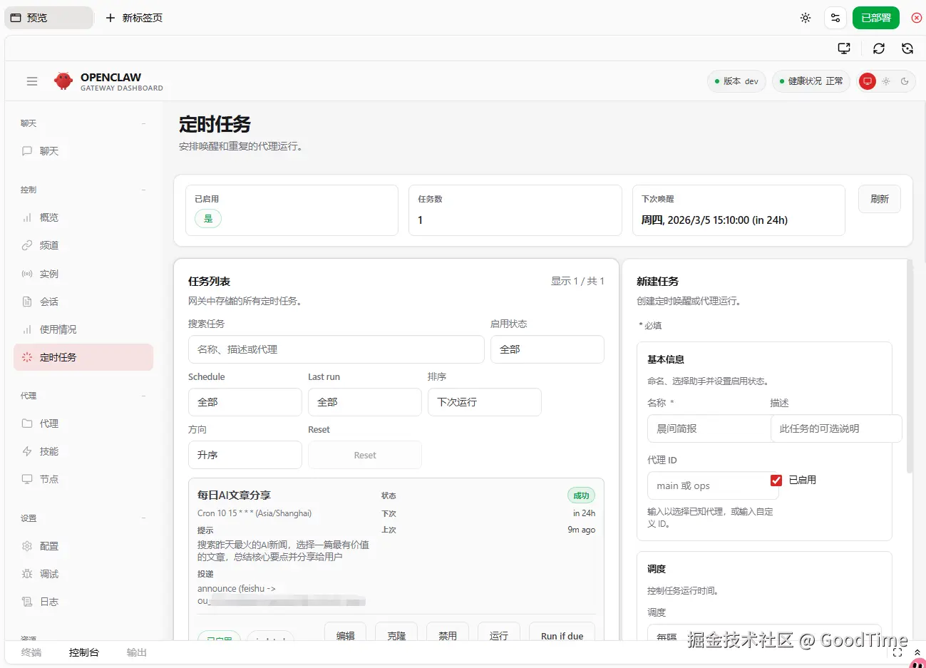 可以在日志模块查看OpenClaw运行过程中的日志,亦可以在终端中输入命令查看具体日志信息,方便查看尤其是错误异常信息的检查。