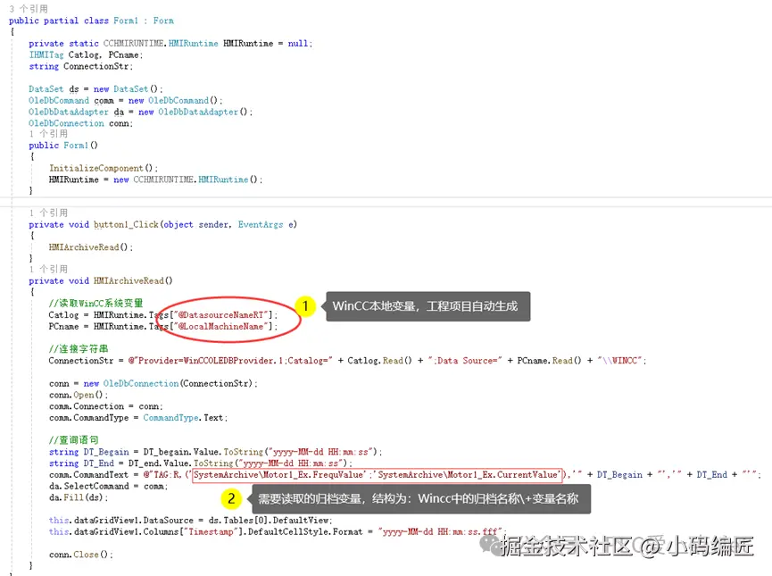WinCC、OLE-DB、归档数据、.NET Framework、C#、WinForms、WPF、Connectivity Pack、DateTimePicker、DataGridView、工业物联网、SCADA、数据集成、时间筛选、西门子
